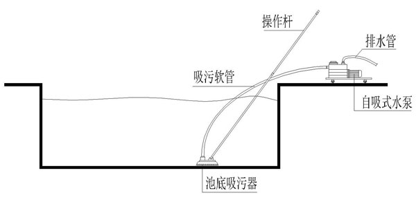 ⑤吸污采用吸污小推車(chē),用池底吸污器吸污,操作簡(jiǎn)便,勞動(dòng)強(qiáng)度較低;