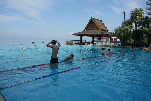 通過特殊的水力推動裝置,形成定向的水流,游泳者通過逆流在泳池中游泳,以此來達到游泳運動的目的,與跑步機類似,因為水流的推動作用,游泳者游不到泳池的邊,所以叫無邊際泳池。