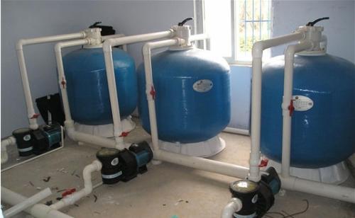 機(jī)房內(nèi)所有水泵(熱水泵除外)均采用進(jìn)口過濾水泵,在水泵前安裝一毛發(fā)過濾器,以攔截一些大顆粒的砂石、樹葉等大雜質(zhì),以保護(hù)水泵及減輕砂濾器的負(fù)荷,雜質(zhì)只需定期清理即可。