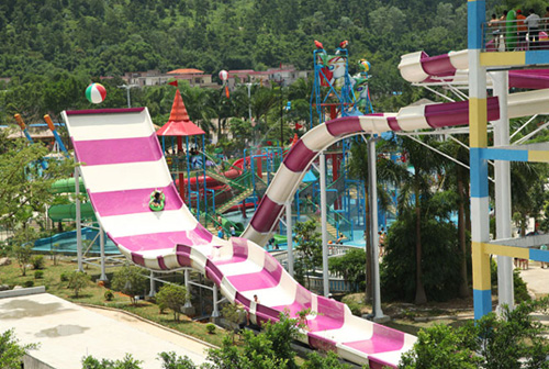 水上樂園設(shè)備:人沖天回旋水滑梯特別適合喜歡驚險、刺激的勇于挑戰(zhàn)的人群。 游客乘坐專用皮筏,從13米高平臺入口處下滑,經(jīng)過一段螺旋引道后,如同太空飛船般俯沖而下,越過最低點(diǎn)后帶著巨大的慣性,沖向?qū)γ娴呐榔禄澹⒀杆倥郎磷罡唿c(diǎn),體驗(yàn)“沖天”的快感;驚魂甫定時,又在自身重力作用下快速回落,進(jìn)入回收滑槽內(nèi),并再次經(jīng)過半圓的回旋滑入落水池,體驗(yàn)“回旋”的暈眩。