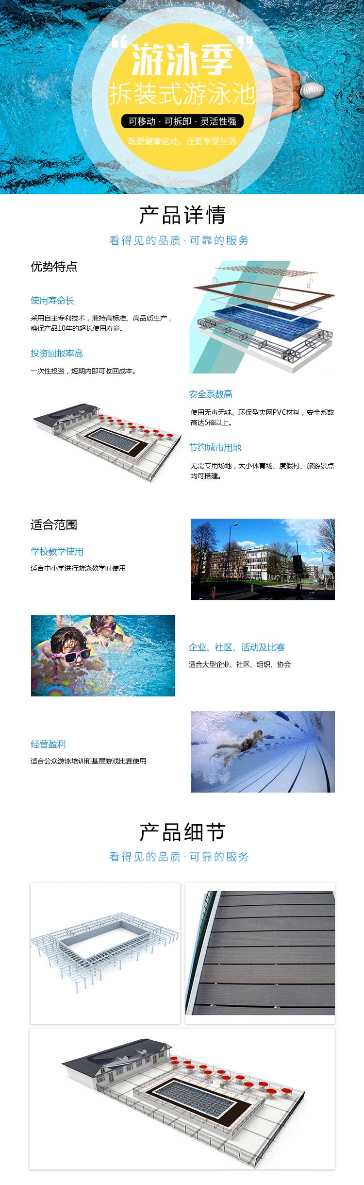 本公司對拆裝式泳池進行研發(fā)制造,至今已積累豐富經(jīng)驗,掌握和攻克了大量的技術(shù)難關(guān),現(xiàn)在公司產(chǎn)品的構(gòu)造、工藝已達到了國內(nèi)外先進水平。并以產(chǎn)品安全可靠的品質(zhì)、溫馨優(yōu)質(zhì)的售后、全面貼心的配套服務(wù)獲得客戶的一致好評。